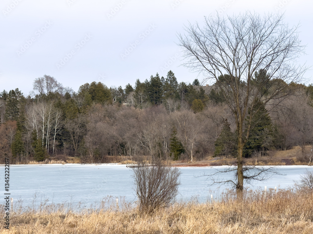 A frozen lake in the woods of the Michigan Upper Peninsula