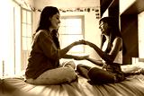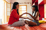 Latin American mother and daughter bonding during a joyful moment at home
