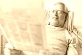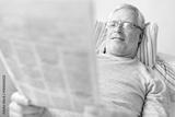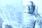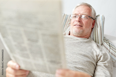 close up of senior man reading newspaper at home