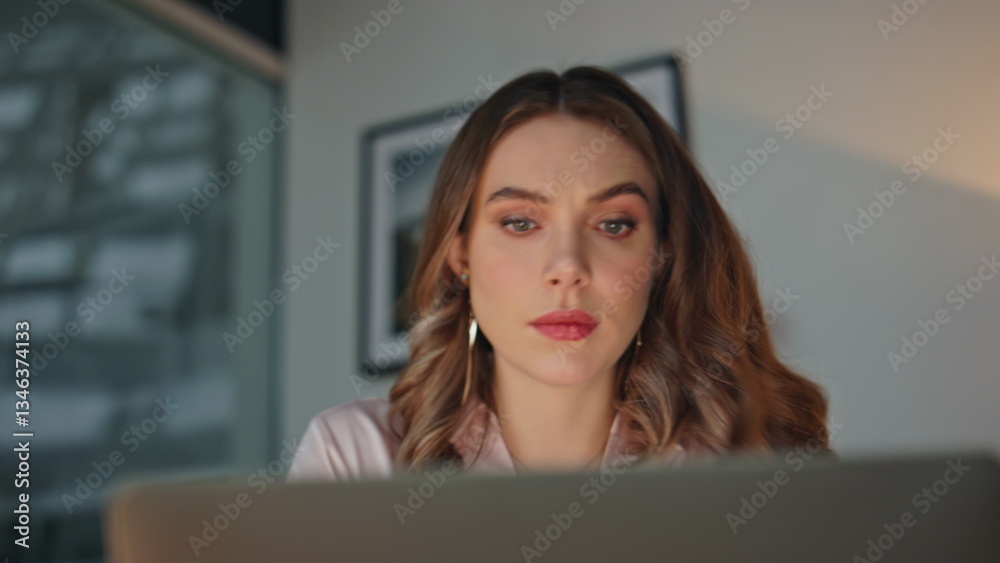 Unhappy ceo solving problem working at night. Portrait tired manager analyzing