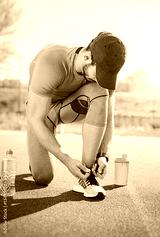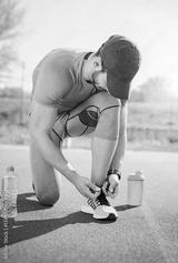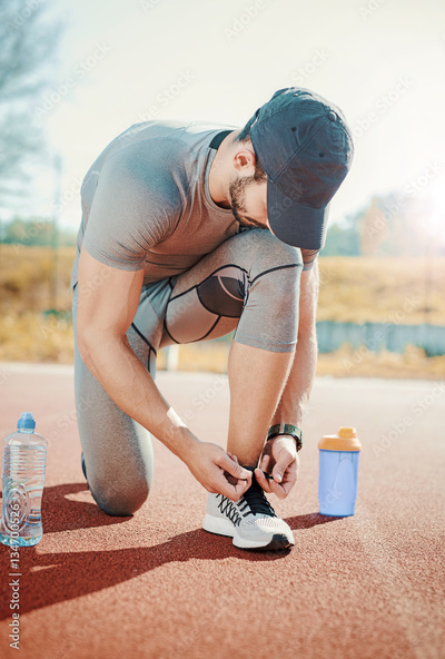 Tying sports shoes. Fitness training outdoors. Sport and exercis