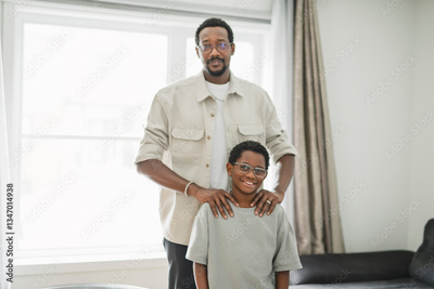 Father and son having great time on the livingroom