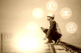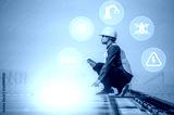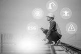 A solar energy engineer inspects photovoltaic panels using digital technology to drive a sustainable future with ESG standards."