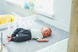 In a cozy warm nursery, a precious newborn lies peacefully on a soft gray blanket, radiating joy and comfort that beautifully embodies the essence of family life and all its loving moments