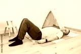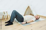 Enjoying a Relaxing Indoor Yoga Practice A Man Skillfully Performing the Bridge Pose on a Comfortable Mat in a Warm and Cozy Room Featuring a Charming Tent, Perfect for a Mindful Retreat