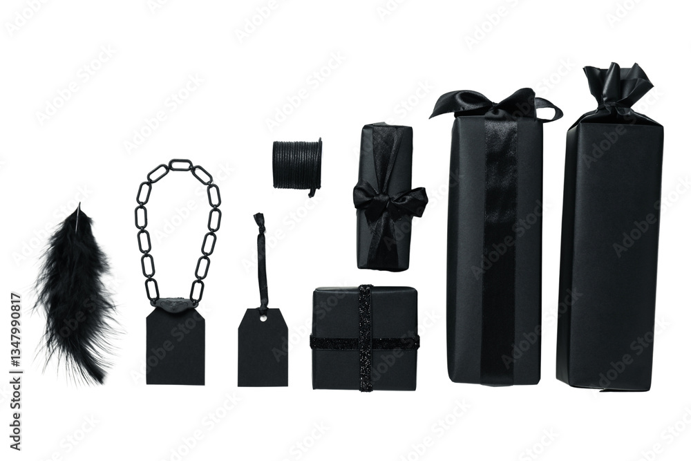 PNG, Black Friday. Only black packages isolated on white background.