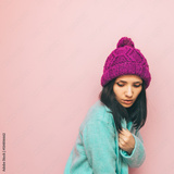 Girl with beautiful face stands in a fashion pose. pastel color mix. stylish swag and minimal. winter clothing.