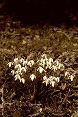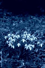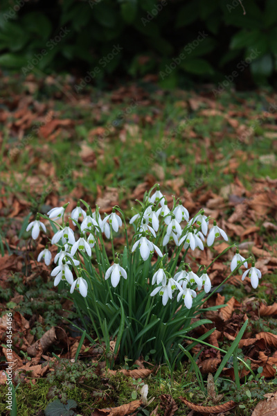 Many white Snowdrop flowers in the garden . Galanthus nivalis on springtime
