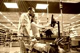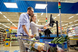 couple buying food at grocery store cash register