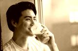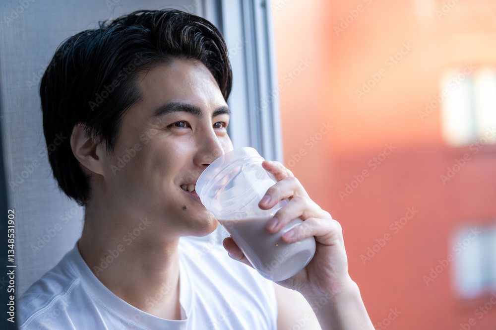 プロテインを飲む日本人男性