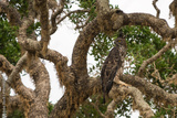 Crested Serpent eagle sitting on tree against blue sky, Yala Nat