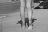 Beach travel - woman walking on sand beach leaving footprints in
