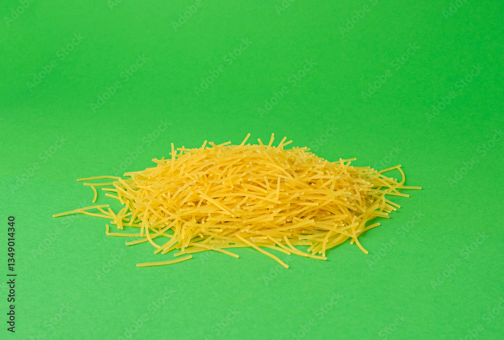 Raw vermicelli, gold soup pasta, small homemade noodles, thin Italy macaroni