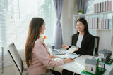 Real estate agents and new homeowners discuss mortgages and insurance coverage for safe investment and ownership.