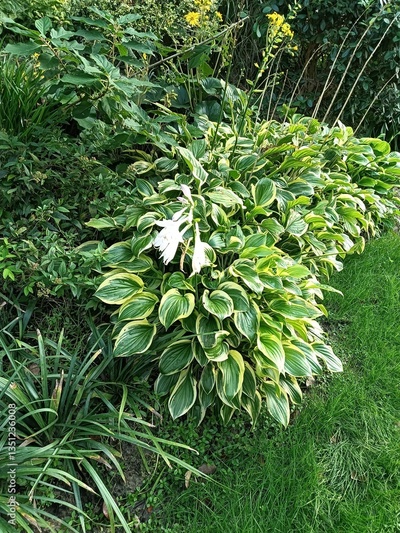 a beautiful view with flowers and trees in the city park in Shanghai city, China