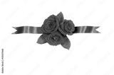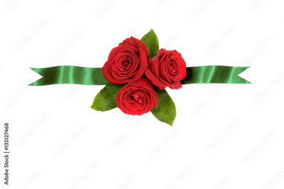 Red rose green ribbon banner border straight horizontal isolated on white background photo