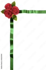 Red rose green ribbon corner frame floral border isolated on white background photo