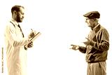 Doctor writing a prescription for an elderly male patient