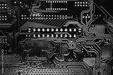 Circuit board. Electronic computer hardware technology. Motherboard digital chip. Tech science background. Integrated communication processor. Information engineering component.