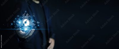 Business professional interacting with AI-powered holographic interface, analyzing real-time financial data and market trends, modern office environment, futuristic technology concept