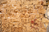 Background of ancient brick wall. Texture of old amphitheater stone for design.