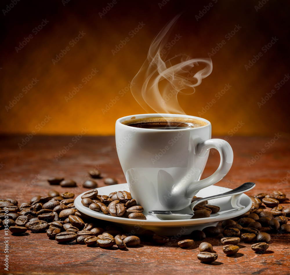 Coffee cup and saucer on a wooden table