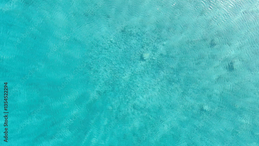 A mesmerizing aerial shot of crystal-clear turquoise waters, revealing the underwater textures beneath. Perfect for backgrounds, nature themes, and travel-related designs.