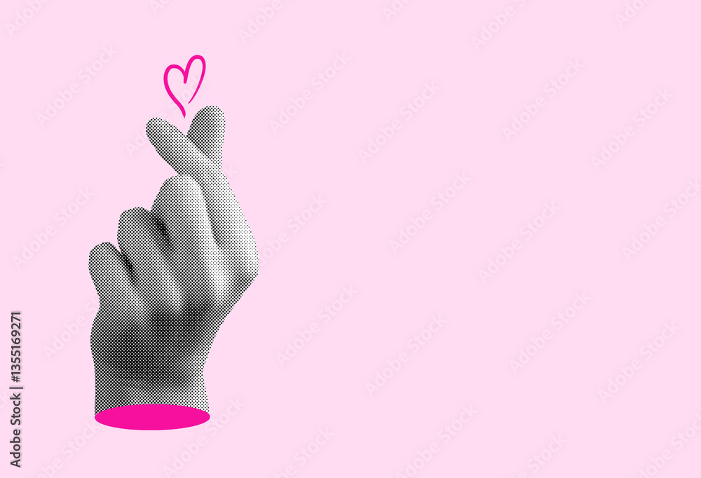 Hand making a heart gesture with fingers, symbolizing love and affection. Creative expression of