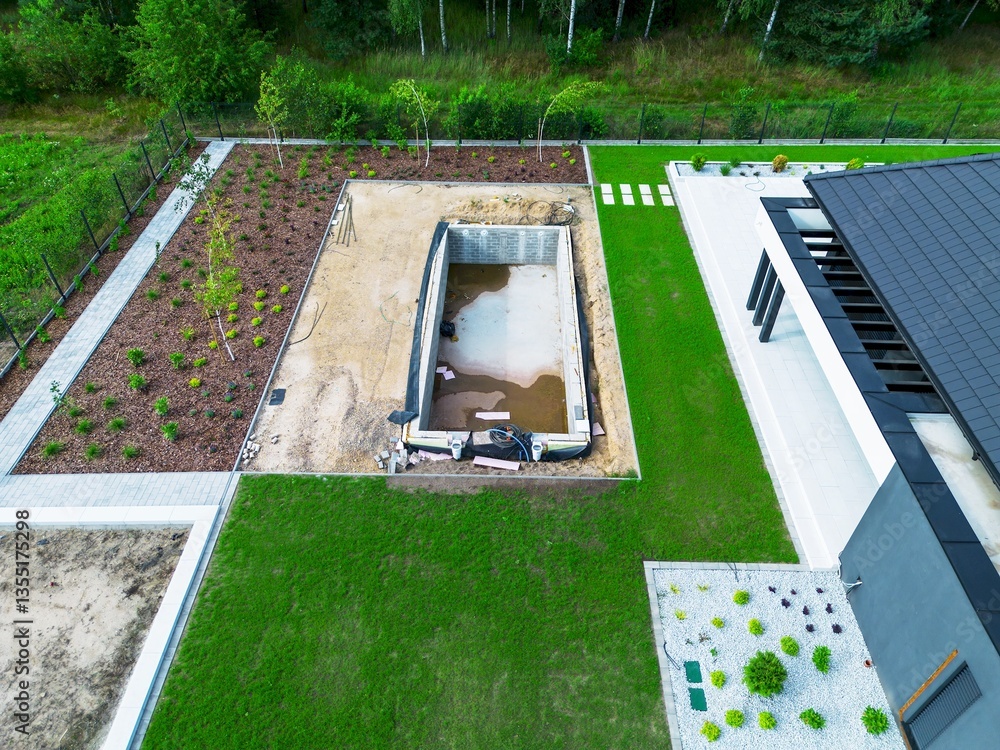 Home with backyard landscaping and pool construction