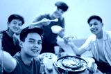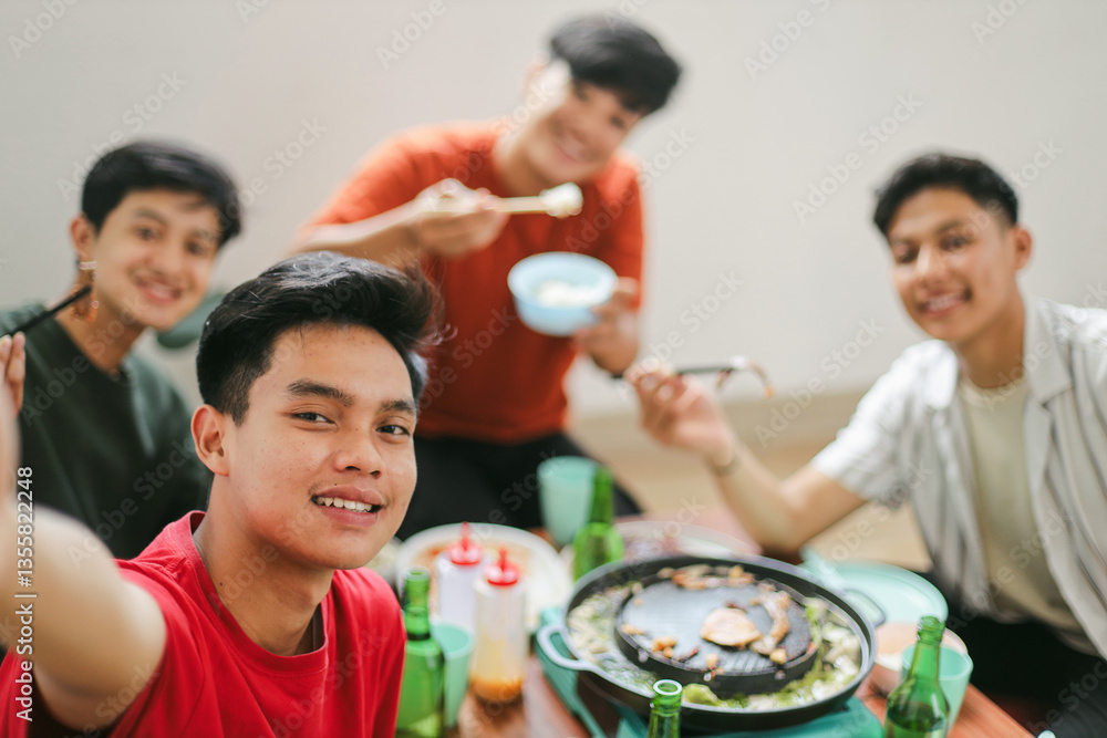 POV of Asian Friends Taking Selfie at Barbecue Dinner Time