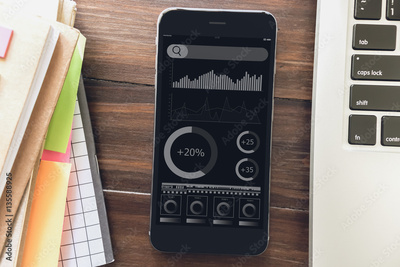 laptop with smartphone and office equipment on desk. vintage style, can be used for ad.