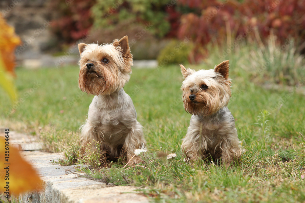 Nice Jorkshire terriers in autumn