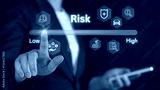 Risk assessment and management concept, Business Woman touch on Low levels of risk management, Evaluation measure analytics technology