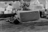 Cheese plate of color cheeses variety, yellow, white and blue cheese board, assorted dairy products