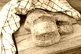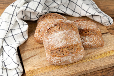 Brown rye bun, square gluten free bread, whole grain healthy breakfast bread