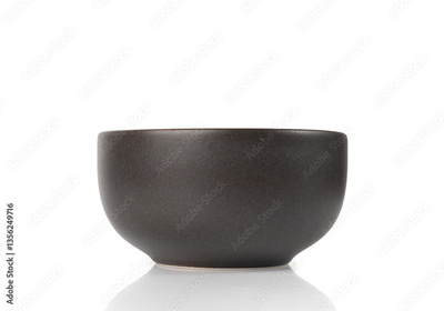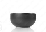 Empty bowl isolated, black plate banner, dark porcelain dish mockup, kitchen template