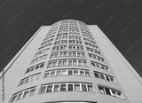 Facade modern residential building, tower on blue sky background. Dnepr city, Ukraine (Dnipro, Dnipropetrovsk, )