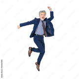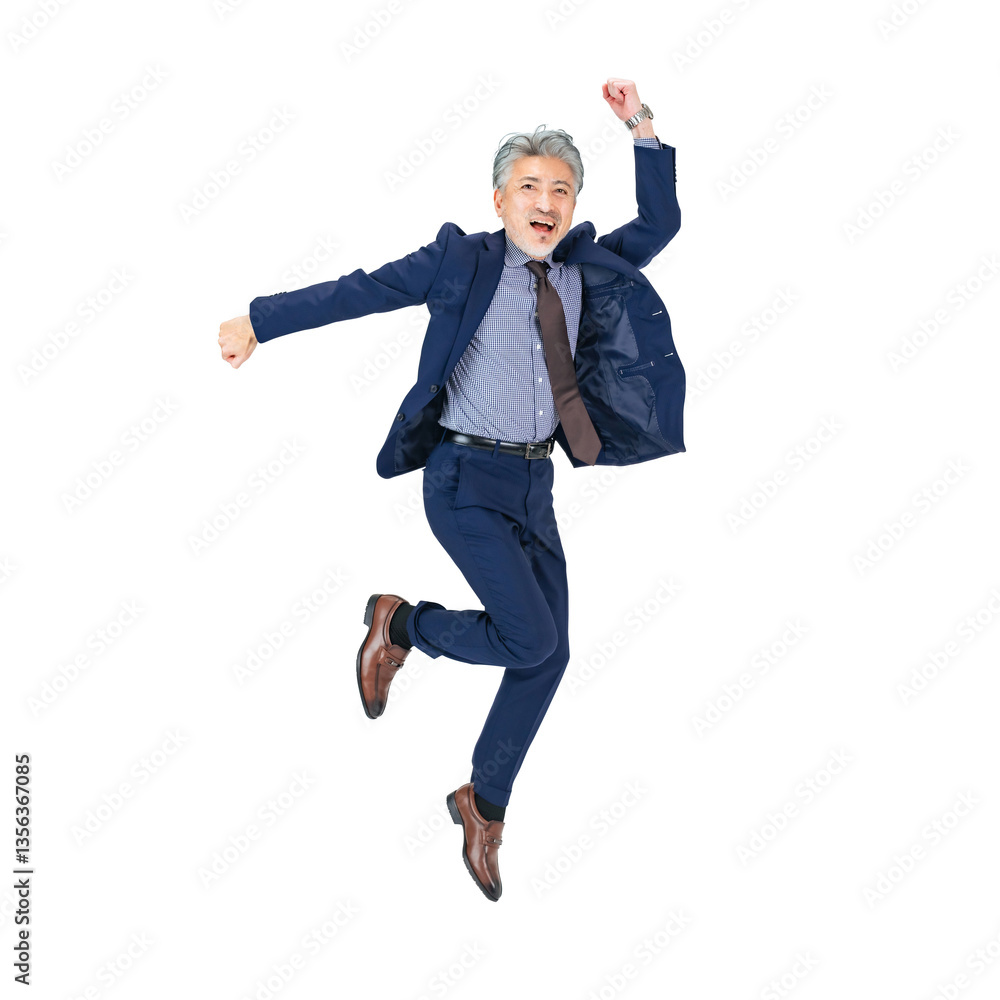 元気にジャンプするミドルエイジ男性ビジネスパーソン 手作業で精密に切り抜いた背景透過全身写真PNG
