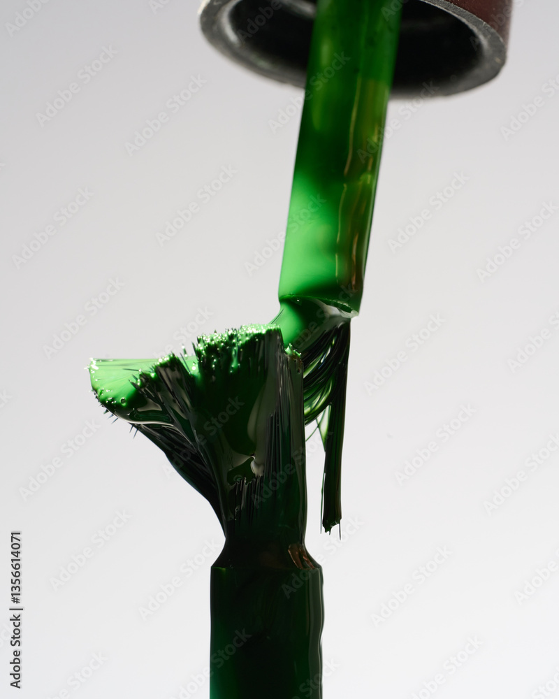 Bright green nail polish mix two brushes together, macro, creative background, color mixing