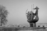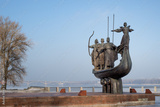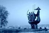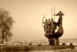 Popular monument to the Founders of Kiev on Dnieper river embankment, Kiev, Ukraine
