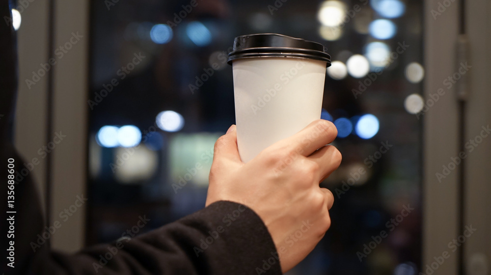 A man is holding a brown paper cup