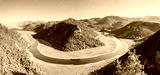 A magical view from above the meander of the river Rijeka Crnojevica. Skadar Lake National Park, Montenegro, Europe.