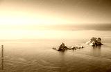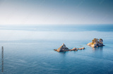 A breathtaking view of Adriatic sea with small islet Sveta Nedelja. Location place Petrovac town, Montenegro, Europe.