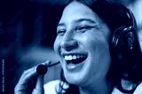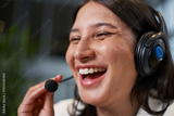 Smiling Customer Service Representative Engaging with a Client Using a Headset