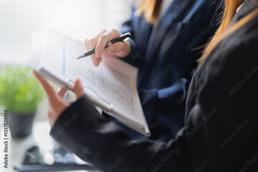 Businesspeople analyze investment on marketing data