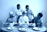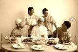 Happy Three Generation Muslim Family Having Fun Together At Dining Room On Eid Celebration