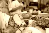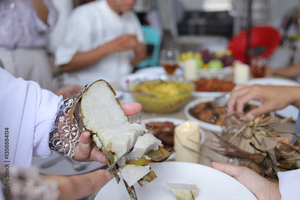 Selective Focus Of Hands Cutting Ketupat Preparing Food For Celebrating Eid Al Fitri
