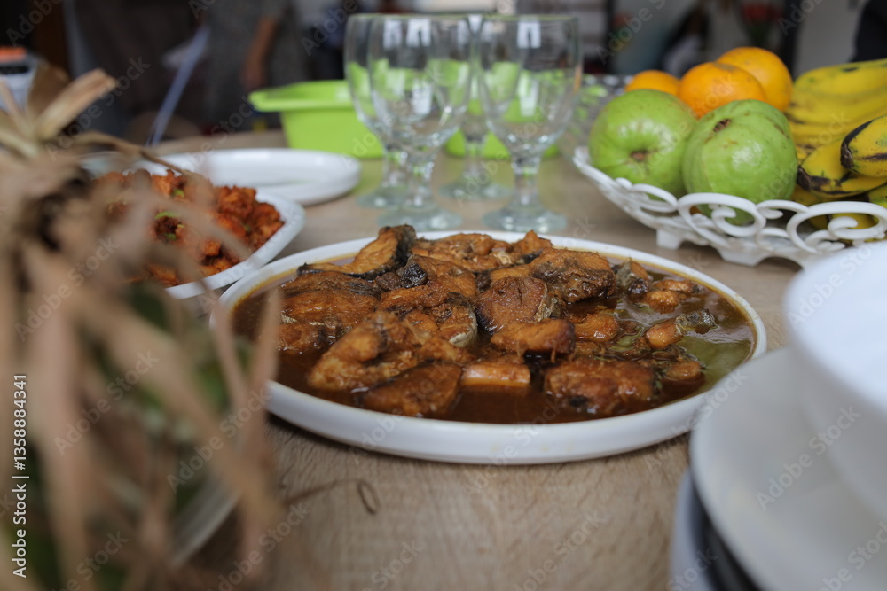 Top View of Various Indonesian Food Menu Served on The Table During Eid Mubarak Moment