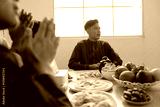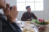 Young Asian Muslim Friends Having Iftar Dinner Together on Ramadan Feast at Dining Table