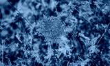 real snowflake closeup on grey wool